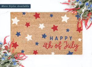 Get in the holiday spirit with a 4th of July doormat. With red, white, and blue stars, this doormat adds a nice bit of 4th of July decor to your front door. A doormat, wreath, and front porch decorations would make your house look festive!