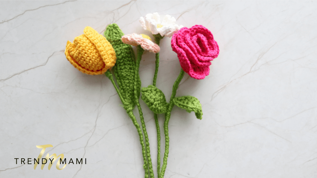 This free crochet flower pattern will walk you through everything, from getting your supplies to making each flower to putting together a beautiful bouquet.