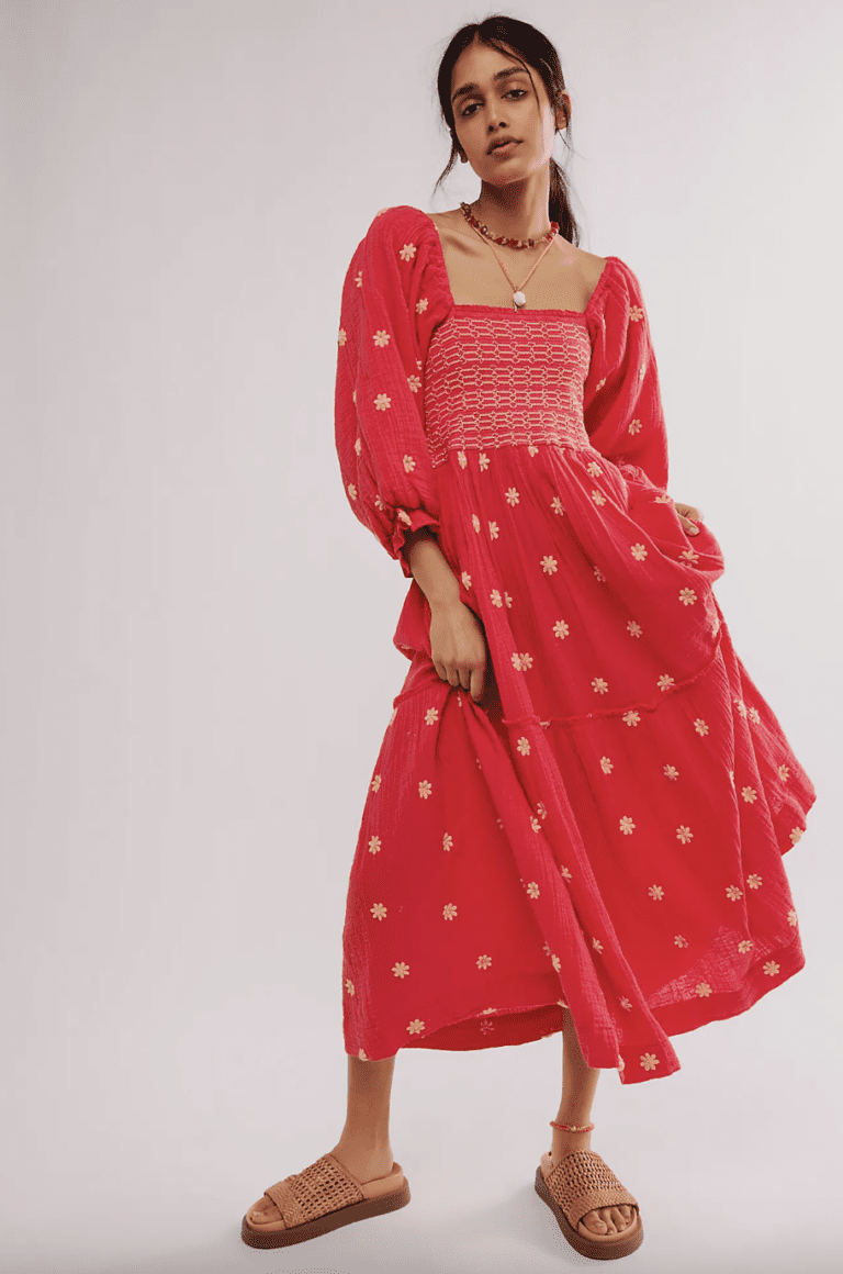 Turn heads in the Dahlia Embroidered Maxi Dress from Free People featuring 3D floral details, a smocked bust, and billowing sleeves. Perfect for brunch, parties, or any effortless occasion. Available in 6 different colors, (we love it in red for the holiday events!) it makes the perfect gift for the fashionistas in your circle who also care about comfort.